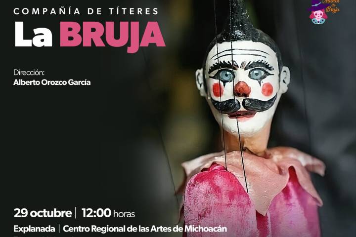 NOTICIAS 18/10/2023Diviértete con esta función de títeres que llega al CRAM de Zamora La función de títeres La Bruja se presentará el próximo 29 de octubre a las 12:00 horas, en la explanada del Centro Regional de las Artes de Michoacán (CRAM), en Zamora, a cargo de La Bruja compañía de títeres; grupo de teatro de Huamantla, Tlaxcala, que llega a tierras michoacanas, gracia al trabajo colaborativo con la Secretaría de Cultura estatal (Secum).