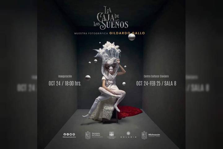 NOTICIAS 21/10/2023Llega al Clavijero la expo La caja de los sueños de Gildardo Gallo La Secretaría de Cultura de Michoacán (Secum) invita a la próxima exposición de Gildardo Gallo, La caja de los sueños, una serie fotográfica ambientada dentro de una caja en forma teatral, basada en la teoría de los septenios, que se presentará en el Centro Cultural Clavijero (CCC), el 24 de octubre del presente año.