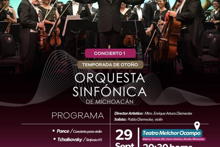 NOTICIAS 26/09/2023Presentará Osidem primer concierto de la temporada de otoño  La SecretarÃa de Cultura de Michoacán (Secum) invita al primer concierto de la temporada de otoño de la Orquesta Sinfónica de Michoacán (Osidem), bajo la batuta del director artÃstico Enrique Arturo Diemecke, a disfrutarse este viernes 29 de septiembre a las 20:30 horas en el Teatro Melchor Ocampo, en Morelia.