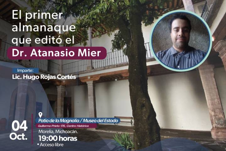 NOTICIAS 02/10/2023Secum invita a la conferencia sobre el primer almanaque de Anastacio Mier La SecretarÃa de Cultura de Michoacán (Secum) invita a la conferencia El primer almanaque que editó el Dr. Anastasio Mier, que se realizará en el Museo del Estado el miércoles 4 de octubre a las 19:00 horas, con acceso libre, a cargo del historiador Hugo Rojas Cortés.