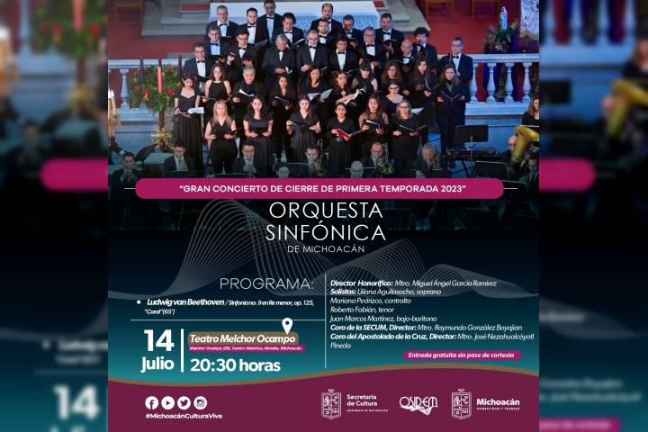 NOTICIAS 11/07/2023La OSIDEM cerrará primera temporada 2023 con gran concierto en el Ocampo La Secretaría de Cultura del Estado (Secum) invita a disfrutar del gran concierto de cierre de la primera temporada 2023 de la Orquesta Sinfónica de Michoacán (Osidem), a realizarse el próximo 14 de julio a las 20:30 horas en el Teatro Ocampo, en Morelia.
