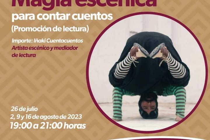 NOTICIAS 16/07/2023Inscríbete al taller de magia escénica para contar cuentosLa Secretaría de Cultura de Michoacán (Secum) invita inscribirse al taller en línea "Magia escénica para contar cuentos", a impartirse los días 26 de julio, 2, 9 y 16 de agosto, de 19:00 a 21:00 horas, a cargo del artista Isidro Merlos Herrera (Iñaki Cuentacuentos).