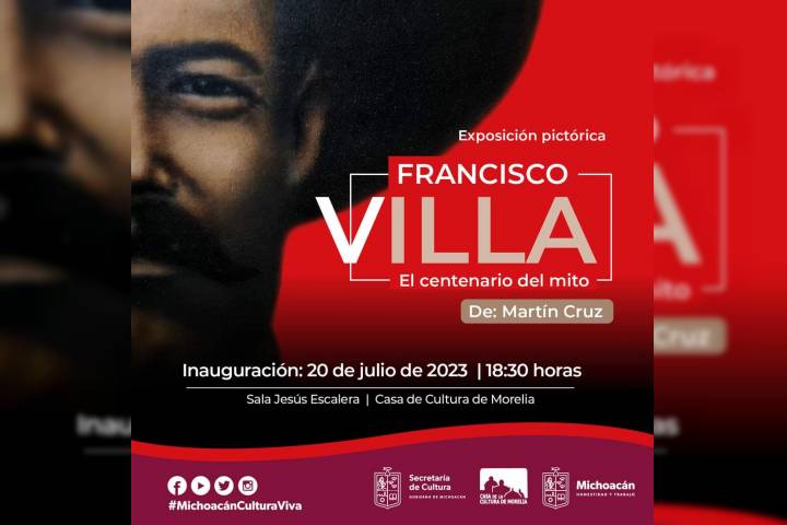 NOTICIAS 17/07/2023Llega exposición sobre Francisco Villa a la Casa de la Cultura de MoreliaFrancisco Villa ha sido un personaje mítico, cuyo impacto cultural ha permanecido arraigado en la sociedad mexicana desde hace ya un siglo. También es la figura central del mural tríptico del artista visual Martín Cruz, que podrá visitarse a partir de las 18:30 horas del 20 de julio, fecha de su inauguración, en la Sala Jesús Escalera, de la Casa de Cultura de Morelia, gracias al apoyo de la Secretaría de Cultura de Michoacán (Secum).