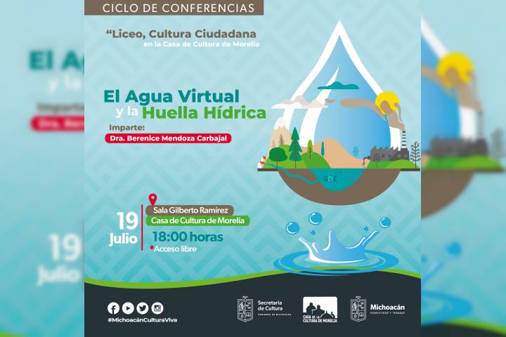 NOTICIAS 18/07/2023Conoce cómo hacer buen uso del agua con esta conferencia de la SecumLa Secretaría de Cultura de Michoacán (Secum) invita a la conferencia "El Agua Virtual y la Huella Hídrica", que se llevará a cabo el miércoles 19 de julio, a las 18:00 horas, como parte del ciclo de conferencias "Liceo, Cultura Ciudadana en la Casa de Cultura de Morelia".