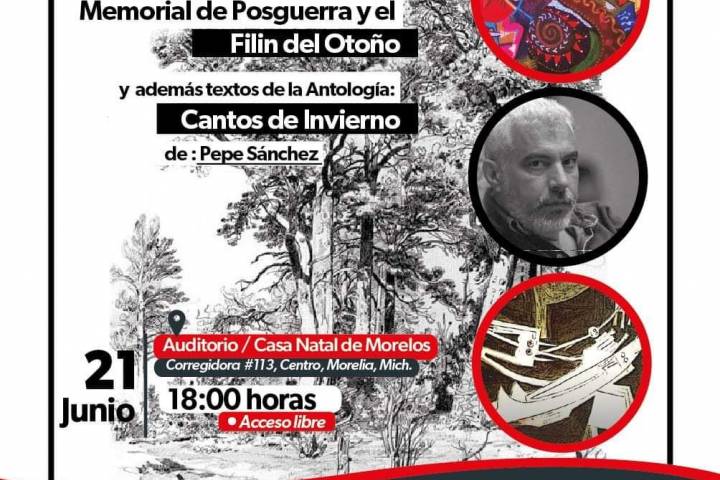 NOTICIAS 21/06/2023Este miércoles presenta Secum obras literarias del escritor cubano Pepe Sánchez Como parte de sus actividades encaminadas a la difusión de la literatura y el fomento a la lectura, la SecretarÃa de Cultura de Michoacán (Secum) llevará a cabo la presentación de las obras Memorial de Posguerra y El Filin del Otoño del escritor cubano Pepe Sánchez, este miércoles 21 de junio a las 18:00 horas, en el Museo Casa Natal de Morelos.