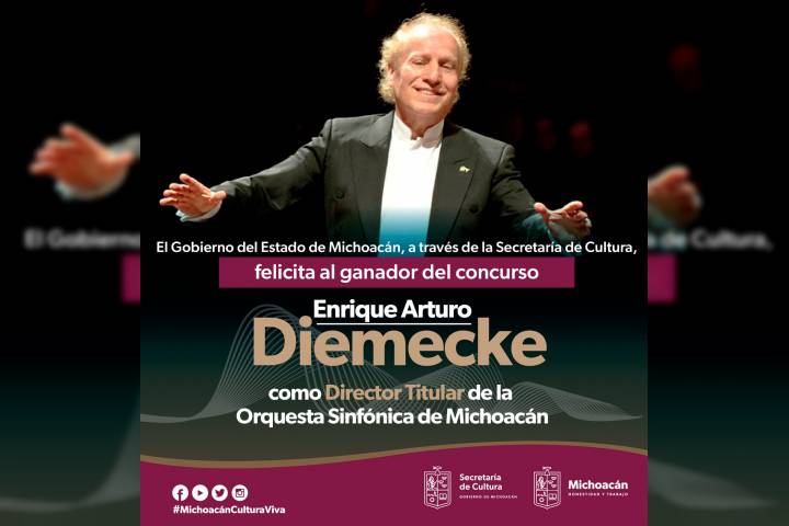 NOTICIAS 22/06/2023Enrique Diemecke, nuevo director de la OSIDEM: Secum La SecretarÃa de Cultura de Michoacán (Secum) anunció al maestro Enrique Arturo Diemecke como el nuevo director titular de la Orquesta Sinfónica de Michoacán (Osidem), resultado del concurso que se realizó durante mayo y junio en el Teatro Melchor Ocampo.