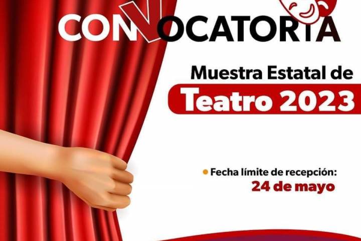 NOTICIAS 23/05/2023Por cerrar, convocatoria de la Muestra Estatal de Teatro 2023: Secum La Secretaría de Cultura de Michoacán (Secum) anunció los últimos días para participar en la Muestra Estatal de Teatro 2023 en la que pueden postularse grupos, compañías o colectivos teatrales integrados por creadores, actrices y actores profesionales mexicanos o extranjeros en la entidad.
