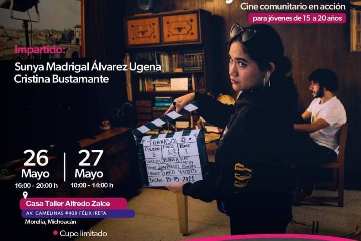 NOTICIAS 24/05/2023Anuncia Secum taller gratuito de cine experimental con perspectiva de género La Secretaría de Cultura de Michoacán (Secum) invita al taller gratuito IDENTIDAD Y TERRITORIO: Cine comunitario en acción, que se llevará a cabo el viernes 26 de mayo de 16:00 a 20:00 horas, y el sábado 27 de mayo de 10:00 a 14:00 horas, en la Casa Taller Alfredo Zalce, en Morelia.