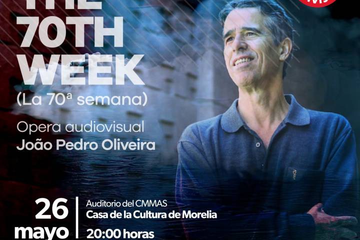 NOTICIAS 25/05/2023Anuncia Secum concierto de ópera audiovisual del portugués João Pedro Oliveira La Secretaría de Cultura de Michoacán (Secum), invita a la ópera audiovisual The 70th Week (La 70ª Semana), del artista João Pedro Oliveira, que se realizará este viernes 26 de mayo a las 20:00 horas en el auditorio del Centro Mexicano para la Música y las Artes Sonoras (CMMAS).