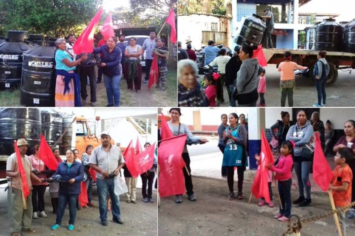 NOTICIAS 04/12/2017Entrega Antorcha tinacos en beneficio de comunidades de La Cañada de los 11 PueblosLuego de varios meses de gestión ante el Gobierno del estado, el Movimiento Antorchista realiza en La Cañada de los 11 Pueblos la entrega de 150 tinacos con capacidad para 1,100 litros cada uno, en beneficio de 150 familias, declaró Leticia Arroyo Vilches, líder del antorchismo en la región.