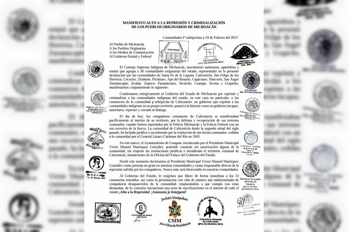 El Consejo Supremo IndÃgena de Michoacán, movimiento autónomo, apartidista y estatal que agrupa a 30 comunidades originarias del estado, representado en la presente declaración por las comunidades de Santa Fe de la Laguna, Caltzontzin, San Felipe de los Herre... Ver más...
