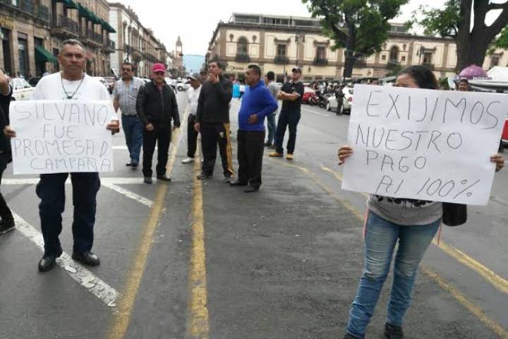 Ex elementos de la Policía Estatal, se manifestaron este miércoles en la Avenida Madero, a las afueras de Palacio de Gobierno, en exigencia del pago de los adeudos que mantiene gobierno del estado por despidos que calificaron como injustificados.
