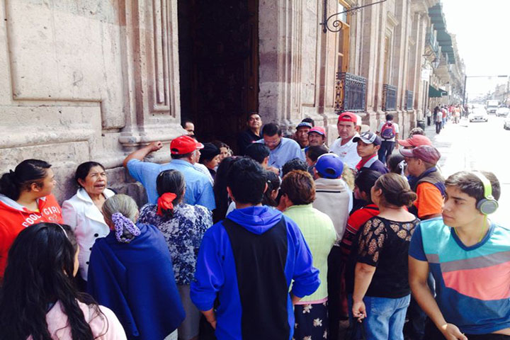 NOTICIAS 15/07/2014Colonos protestan fuera del Ayuntamiento de MoreliaEn la exigencia del cumplimiento a una serie de demandas sociales, agremiados a la organización Rubén Jaramillo se manifiestan a fuera del Ayuntamiento de Morelia bloqueando la circulación de la calle Allende, Galeana y Rayón.