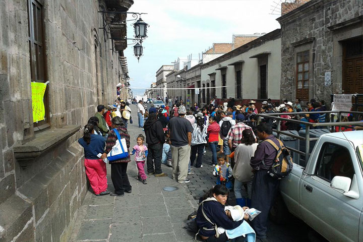Un grupo de aproximadamente cincuenta personas de diferentes comunidades, afiliadas al Movimiento Antorchista, provenientes de Angangueo, Ciudad Hidalgo e Irimbo, acudieron este viernes a Palacio de Gobierno estatal, en Morelia, con el objetivo de manifestar algunas necesidades que tienen en sus respectivas localidades, entre las que destacan apoyos para sus viviendas devastadas por las granizadas, pues la gran mayoría tiene tejados de lámina... Ver más...