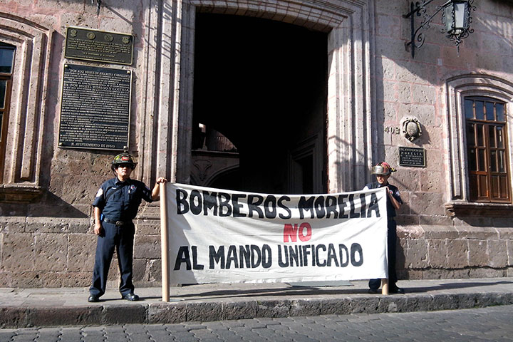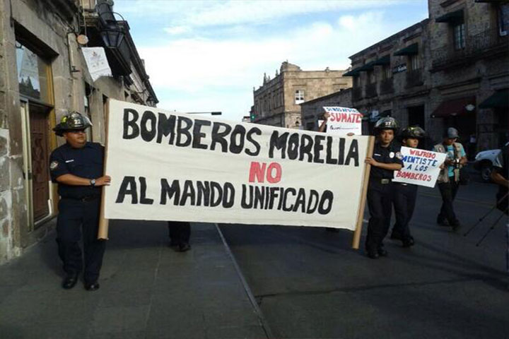 Los integrantes del cuerpo de Bomberos de Morelia se niegan tajantemente a formar parte del mando policial unificado dentro de la estructura del Gobierno del Estado de Michoacán, por lo que este miércoles se manifestaron de manera pacífica en las instalaciones de Palacio Municipal. "Con esta modalidad pretenden quitarnos la plaza que nosotros tenemos con el Ayuntamiento capitalino y pasarnos a las filas de la Secretaría de Seguridad Púb...