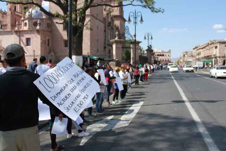 Alrededor de 150 antorchistas volvieron a manifestarse en el centro histórico de la ciudad de Morelia, formando una cadena humana sobre las banquetas y sin interrumpir el tráfico, para denunciar que la ProcuradurÃa General de la República y la SecretarÃa de Gobernación federal aún no han actuado eficazmente para que se dé con el paradero de Manuel Serrano Vallejo, padre de la edil de Ixtapaluca, Estado de México, Maricela Serrano HernÃ... Ver más...