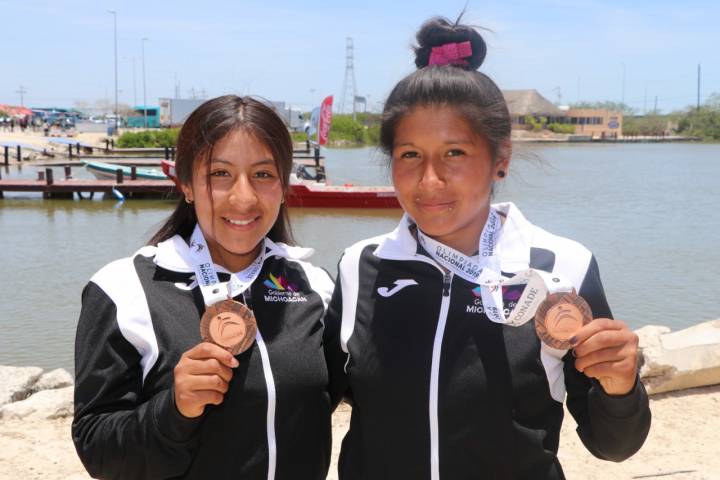 El canotaje michoacano continúa con la suma en la Olimpiada y Nacional Juvenil, al lograr un bronce en la prueba de C2 500 metros. Ximena Camino Quirino y Virginia Quirino Medrano se colgaron medalla de bronce al cronometrar 2.31.47 minutos en la prueba de C2 500 metros, categoría Juvenil Mayor. El oro fue para Baja California con 2.30.40 y la plata para Jalisco con 2.30.75. "Me quedo con la satisfacción de saber que veníamos luchando...