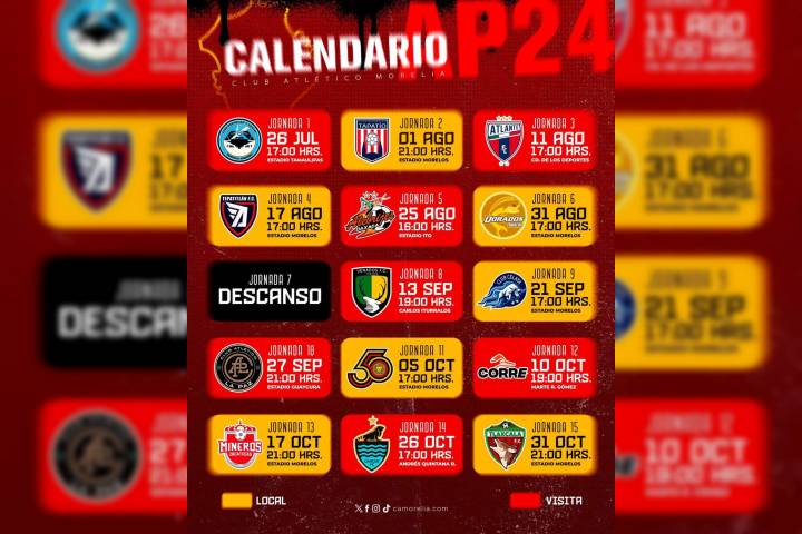 De acuerdo, al Club Atlético Morelia su debut en el torneo Apertura 3024 será ante la Jaiba Brava del Tampico Madero, recién ascendido de la Liga Premier, el viernes 26 de julio en punto de las 5 de la tarde en el estadio Tamailipas, dentro de la Jornada 1 de la Liga de Juguete MX. Sin que, la Liga de Juguete diera a conocer el calendario oficial para el Apertura 2024, Morelia hará su debut ante la Jaiba Brava. Siendo el inicio del torneo...