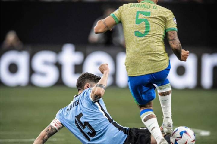 El partido en el Allegiant Stadium fue muy igualado desde el comienzo, con ambos equipos mostrando respeto al rival con un fuerte marcaje y buscando la mejor oportunidad para atacar. Quien llegó primero fue Uruguay, que vio cómo el balón se acercaba luego de un desvío en la cabeza de Militão a los 18' y casi traiciona a Alisson. En el siguiente córner, Olivera se elevó más que la defensa brasileña y envió el balón por encima del parant...