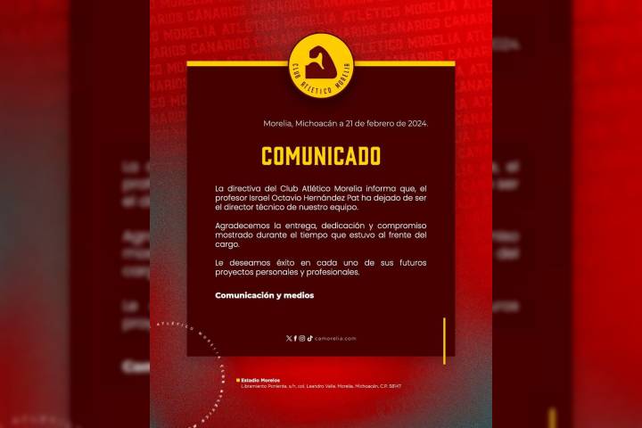 Crónica de un técnico que nunca debió a los Canarios y hoy fue echado a la calle por la Directiva encabezada por José Luis Higuera, al tener al equipo en la penúltima posición general, tras caer la noche de a noche 3-1 ante Correcaminos, en la fecha 7 del torneo Clausura 2024 de la Liga de Juguete MX. Mediante un comunicado, la Directiva del Club Atlético Morelia informó que, Israel Hernández Pat dejó de ser director técnico del eq...
