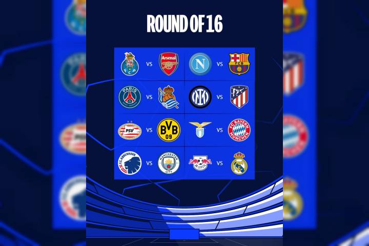 Ya se conocen las eliminatorias de los octavos de final de la UEFA Champions League tras el sorteo de este lunes. Leipzig - Real Madrid, Nápoles - Barcelona, Inter - Atlético o Paris - Real Sociedad son algunos de los emparejamientos de octavos de final de la UEFA Champions League 2023/24 tras el sorteo celebrado este lunes en Nyon, en Suiza. Sorteo de octavos de final de la Champions League Oporto - Arsenal Nápoles - Barcelona ...