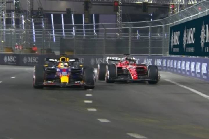 Verstappen tomó la delantera de Leclerc al comienzo de la carrera, pero rápidamente recibió una penalización de cinco segundos por obligar a su r... Ver más...