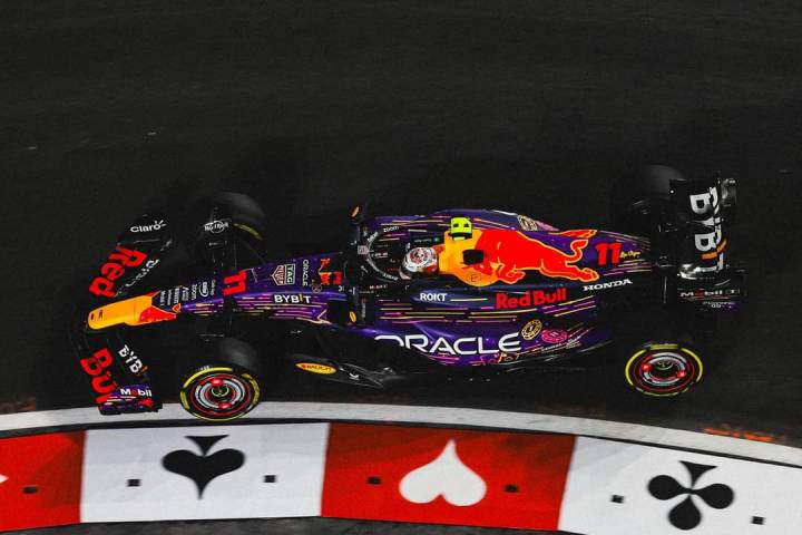 NOTICIAS 17/11/2023Sergio Pérez es cuarto en FP2 del GP de Las Vegas Charles Leclerc marcó el ritmo por delante de su compañero de equipo en Ferrari, Carlos Sainz, y de su rival en Aston Martin, Fernando Alonso, durante una ajetreada y prolongada segunda sesión de entrenamientos para el Gran Premio de Las Vegas que se desarrolló hasta las primeras horas de la mañana del viernes.