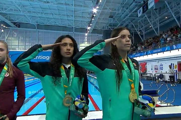 Las seleccionadas nacionales Miranda Grana, Melissa Rodríguez, María Mata Cocco y Sofía Revilak, ganaron medalla de bronce en la final de 4x100 metros combinado femenino de natación, con un tiempo de 4:04.73 minutos en los XIX Juegos Panamericanos Santiago 2023; Canadá obtuvo oro y Estados Unidos plata.