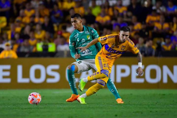 NOTICIAS 25/04/2023Duelo de fieras en Concacaf Luis Quiñones anotó un gol y tuvo una asistencia para guiar la victoria de Tigres 2-1 sobre el Club León en el partido de ida de las semifinales de la Liga de Campeones Concacaf Scotiabank 2023 el martes por la noche en el Estadio Universitario en San Nicolás de los Garza, México.