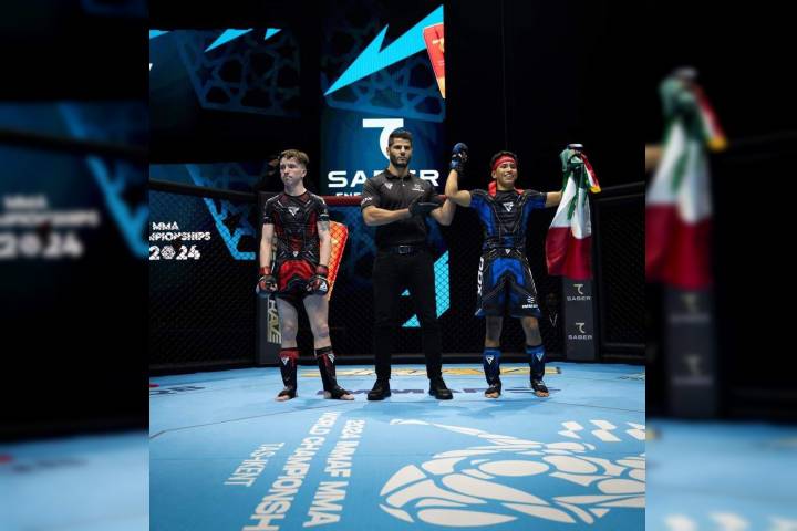 La selección nacional de artes marciales mixtas fue protagonista de una dominante presentación en el Campeonato Mundial de la especialidad (AMM) 2024, celebrado en Tashkent, Uzbekistán, gracias a cuatro victorias de sus integrantes. Sergio Anaya se encargó de inaugurar la cosecha de triunfos para el representativo mexicano, tras derrotar al francés Luidgi Grimoire vía decisión unánime y avanzar a la siguiente ronda de la categoría pes...