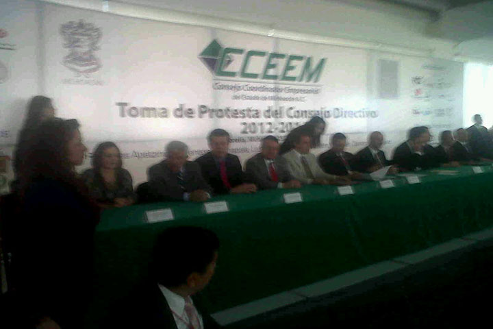 NOTICIAS 25/04/2012Considera Fausto a empresarios como aliados durante toma de protesta del Consejo Directivo del CCEEMComo aliados para el fomento económico y la generación de empleos considero el gobernador del estado, Fausto Vallejo Figueroa, a los empresarios, durante la toma de protesta del Consejo Directivo 2012 - 2014 del Consejo Coordinador Empresarial (CCEEM), que encabeza Carlos Gálvez.