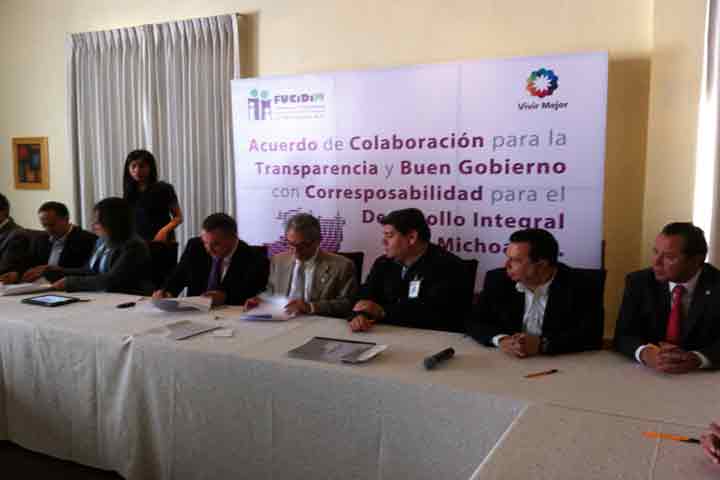 NOTICIAS 26/03/2012Firman Acuerdo para la Transparencia y Buen GobiernoEmpresarios de Michoacán y algunos de los funcionarios federales, signaron acuerdo de colaboración para la transparencia y buen gobierno, encabezado por la Fundación Ciudadana para el Desarrollo Integral de Michoacán, Asociación Civil.