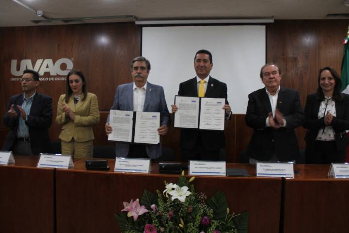 NOTICIAS 20/10/2018Firma AMIC convenio con UVAQ en beneficio de estudiantesCon la intención de promover el desarrollo integral de los estudiantes, la Asociación Mexicana de la Industria de la Construcción (AMIC), realizó la firma del convenio de colaboración con la Universidad Vasco de Quiroga, el cual permitirá que los alumnos de Ingeniería Civil, Arquitectura, Derecho, Administración de Empresas y Contaduría liberen sus prácticas y servicio social.