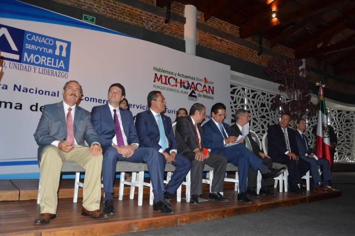 NOTICIAS 07/04/2017Canaco invita a afrontar retos internacionales Este viernes, rindió protesta la nueva mesa directiva de la Cámara Nacional de Comercio Servicios y Turismo (Canaco-Servytur) de Morelia que encabeza Luis Navarro García.