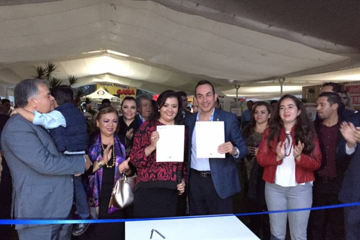 En compañía de Luisa Estela León Marín y Armando León, directivos de Grupo Leomar, Jorge Tovar Zavala, presidente de la Cámara Nacional de la Industria ... Ver más...