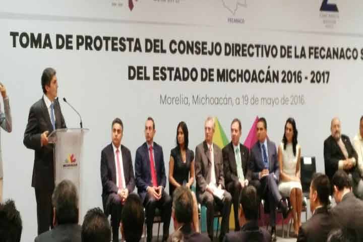 Hoy hay mucha seguridad en Michoacán, con lo que el gobierno del estado ha garantizado la permanencia y llegada de más empresas que potencialicen el desarrollo económico de la entidad, señaló Enrique Solana, presidente de la Confederación de Cámaras Nacionales de Comercio (CONCANACO), durante su discurso en la toma de protesta del nuevo Comité Directivo de la FECANACO.