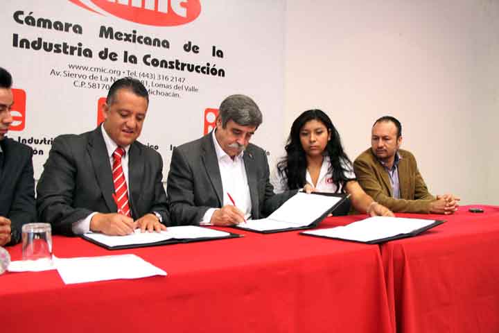 La delegación de la Secretaría de Desarrollo Social en Michoacán y la Cámara Mexicana de la Industria de la Construcción (CMIC) firmaron convenio de colaboración para la conformación de comisiones mixtas, mismas que explicó el delegado de SEDESOL, Víctor Silva Tejeda realizarán revisión de necesidades para edificaciones de pisos, techos y muros.