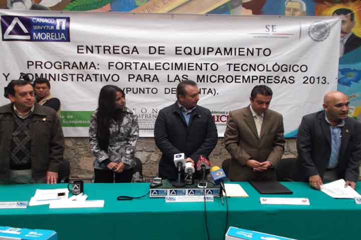 Con la finalidad de brindar competitividad y capacitación a 60 micro, pequeñas, medianas empresas de la capital michoacana autoridades de los tres órdenes de gobierno entregaron a equipamiento del programa Fortalecimiento Tecnológico y Administrativo para las Microempresas 2013 (Punto de Venta).