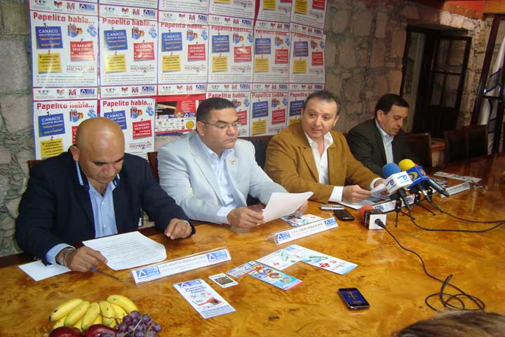 En rueda de prensa, el presidente de la Canaco Servytur Morelia, acompañado por Isaías Ayala Alipio, Tulio Guerrero Cancino y Agustín Rebollar Cruz, se... Ver más...