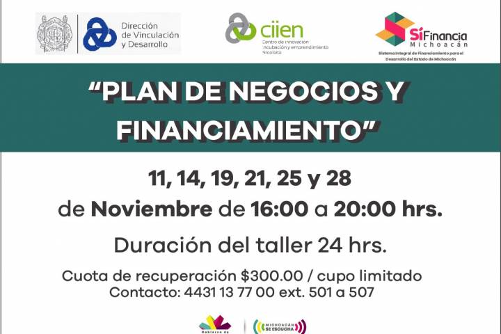 Sí Financia y UMSNH, impartirán taller "Plan de Negocios y Financiamiento"