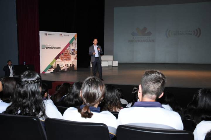 En un municipio en el que 38 por ciento de su población la conforman jóvenes entre 15 y 24 años, el secretario de Desarrollo Económico de Michoacán, Jesús Melgoza Velázquez, los convocó a ser emprendedores y a iniciar proyectos que les permitan autoemplearse y generar fuentes de empleo. Ante 300 alumnas y alumnos de diversos planteles educativos de nivel medio superior y superior, que acudieron a la plática "Empréndete", y que en s...