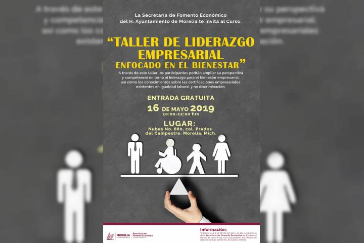 El fortalecimiento y creación de competencias empresariales para el desarrollo potencial del municipio  es  una actividad impulsada por el Gobierno de Morelia a cargo del presidente municipal, Raúl Morón Orozco. La  dirección de Emprendimiento e Innovación de la Secretaría de Fomento Económico municipal realizará el Taller: "Liderazgo empresarial, enfocado en el bienestar", el día jueves 16 de mayo de 10:00 a 12:00 horas, en la ca...