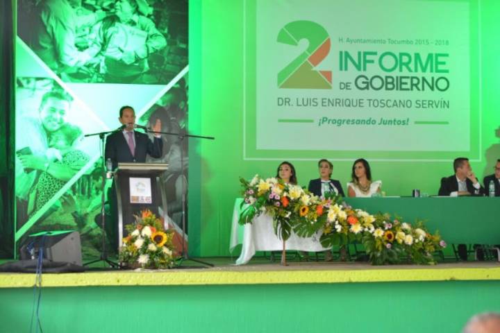 NOTICIAS 13/08/2017Desarrolla Gobierno del Estado 39 obras por más de 15 millones de pesos en Tocumbo En representación del gobernador del Estado Silvano Aureoles Conejo, el secretario de Desarrollo Económico (Sedeco), Jesús Melgoza Velázquez, asistió al segundo informe de gobierno de Luis Enrique Toscano Servín, presidente municipal de Tocumbo.