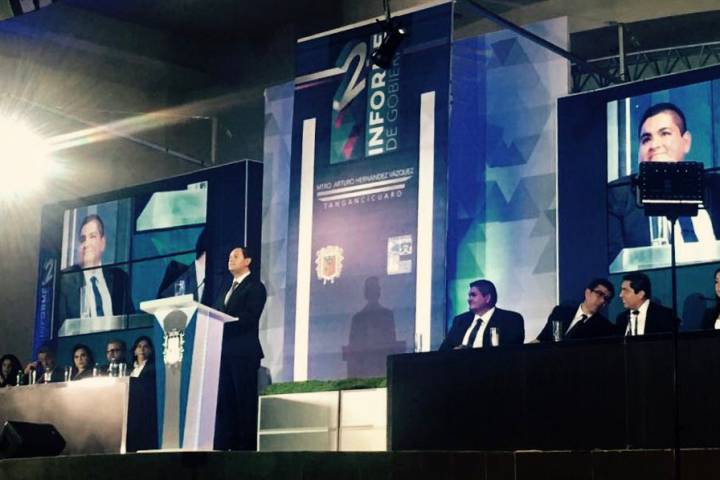 NOTICIAS 03/08/2017Invierte Gobierno del Estado 70 millones de pesos en 64 obras en TangancÃcuaro La cercanÃa y coordinación institucional con el municipio de TangancÃcuaro nos ha permitido realizar 64 importantes obras y acciones, con una inversión cercana a los 70 millones de pesos, informó Jesús Melgoza Velázquez, durante su participación en el Segundo Informe de Labores del presidente municipal de TangancÃcuaro, Arturo Hernández Vázquez.