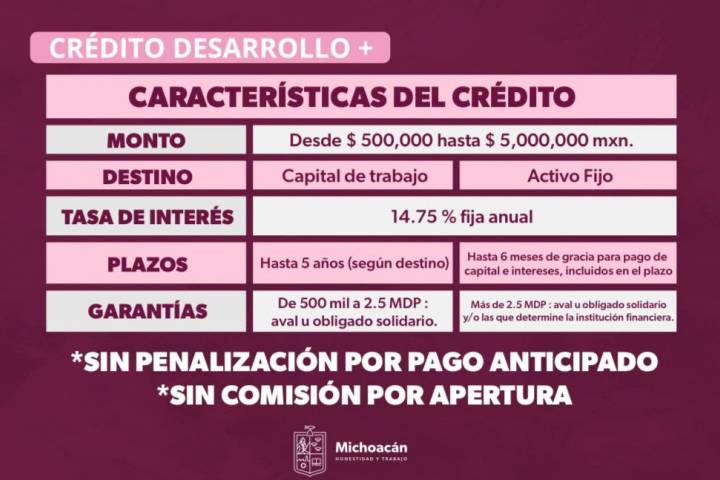 Recordó que el programa opera con aportación económica de Sedeco y el Sistema Integral de Financiamiento para el Desarrollo de Michoacán (Sí... Ver más...