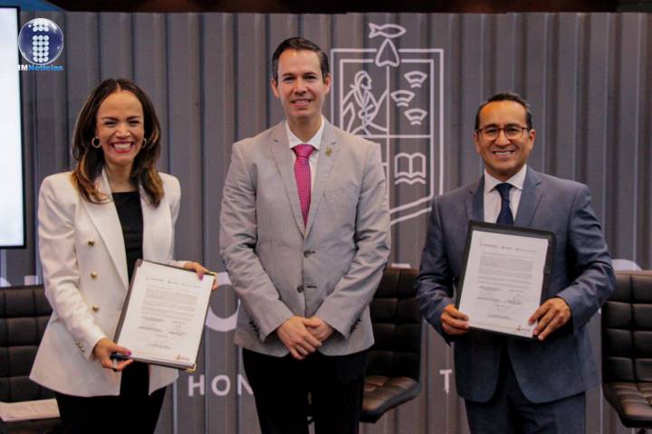 El gobernador Alfredo Ramírez Bedolla, el secretario de Desarrollo Económico, Alfredo Anaya Orozco, el rector de la Universidad de la Ciénega, Sergio Miguel Cedillo Fernández y el director de D... Ver más...