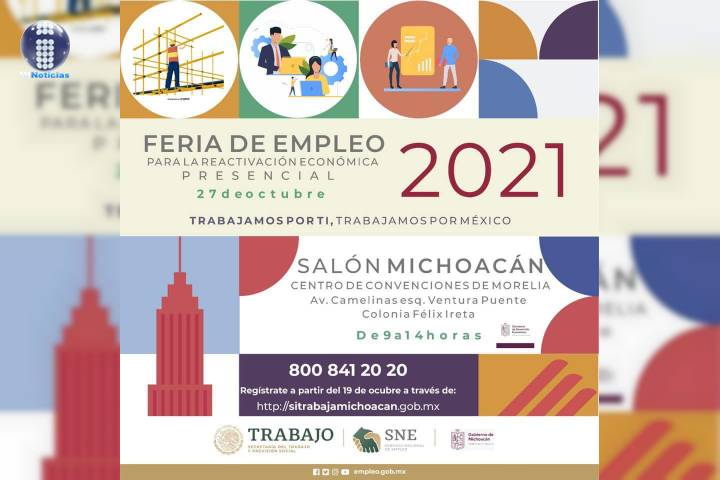 NOTICIAS 25/10/2021Todo listo para la Feria Nacional de Empleo para la Reactivación Económica Con la participación de 30 empresas que ofrecerán más de 560 vacantes, la Secretaría de Desarrollo Económico (Sedeco), en coordinación con el Servicio Nacional de Empleo (SNE) llevarán a cabo la "Feria Nacional de Empleo para la Reactivación Económica Michoacán 2021", el miércoles 27 de octubre.
