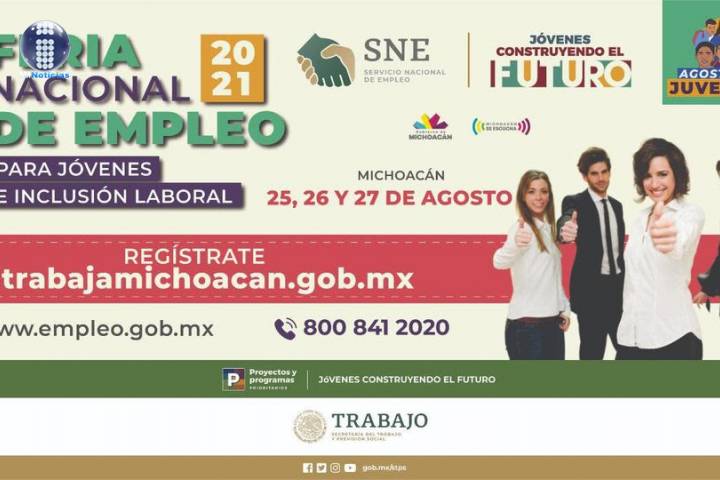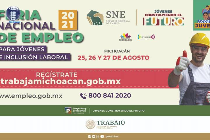Con un reconocimiento del Servicio Nacional de Empleo (SNE) al trabajo coordinado con las entidades federativas que, como Michoacán, no han parado actividades pese a un contexto sanitario y económico complicado, se llevó a cabo en la entidad la inauguración de la Feria Nacional de Empleo para Jóvenes e Inclusión Laboral. Por el bien de Michoacán, durante los días 25, 26 y 27 de agosto, de 9 a 15 horas, a través de la plataforma sitrab...