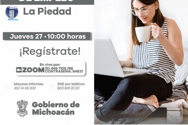 De acuerdo con el calendario preparado en conjunto por la Secretaría de Desarrollo Económico (Sedeco), y el Servicio Nacional de Empleo (SNE), el martes 25 de mayo a las 10 horas se ofrecerá un taller virtual para buscadores de empleo de la región Pátzcuaro.