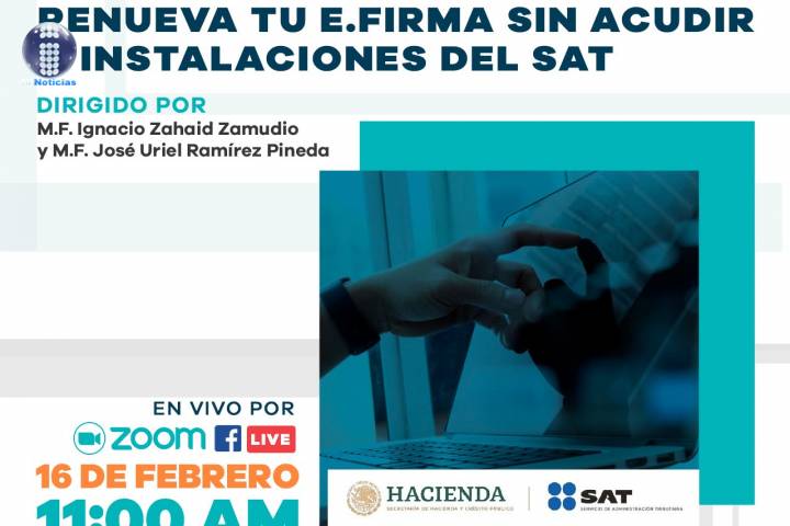 NOTICIAS 15/02/2021 Capacitará Espacio Emprendedor para actualizar e.firmaPara apoyar a las y los empresarios en la realización de trámites en los que se requiere la e.firma, sin tener que acudir a las oficinas del Servicio de Administración Tributaria, la Secretaría de Desarrollo Económico (Sedeco), a través de Espacio Emprendedor ofrecerá la charla "SAT ID.", este martes 16 de febrero.